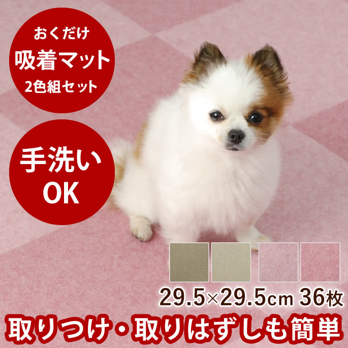 おくだけズレない吸着マット 29.5×29.5cm 2色合計36枚 各色18枚セット 吸着マット 防音 タイル 廊下 犬マット 犬用マット 階段 滑り止め...